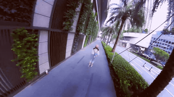 同时摄影师手持自拍杆控制相机移动,营造视角位移效果。