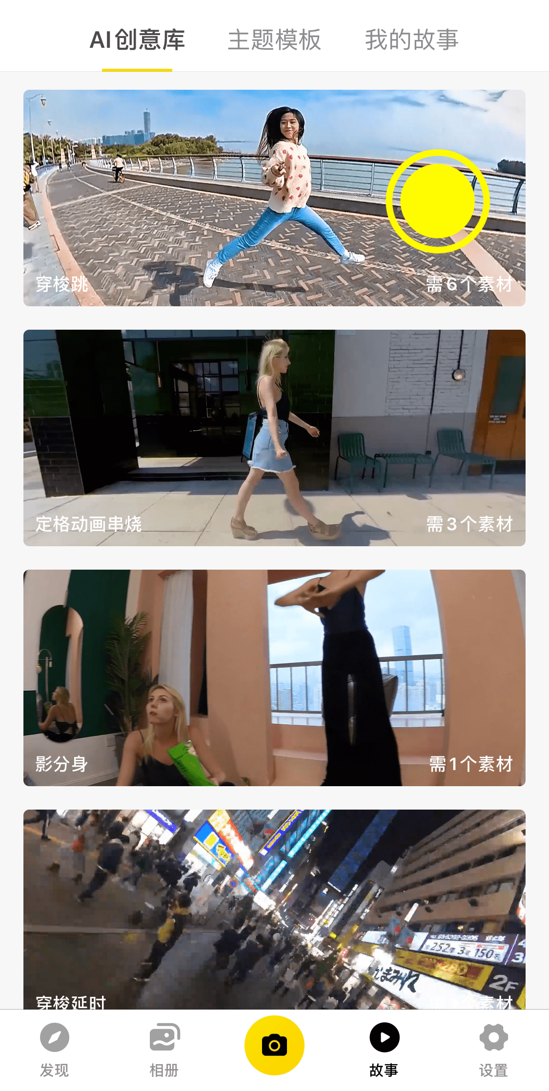 在App进入【故事】->【AI创意库】->【穿梭跳】