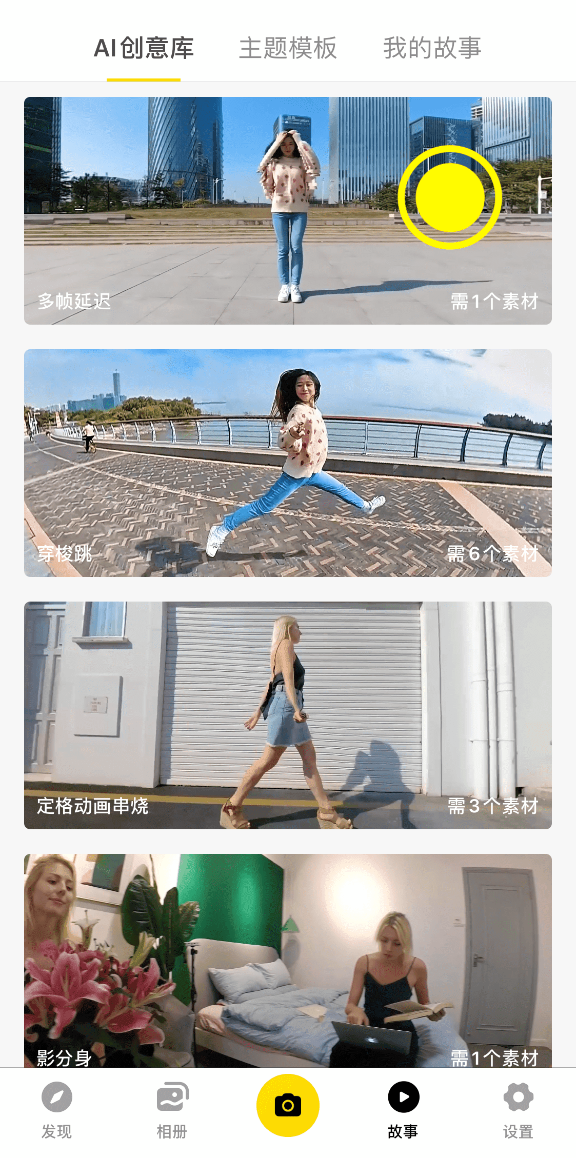 在App进入【故事】->【AI创意库】->【多帧延时】