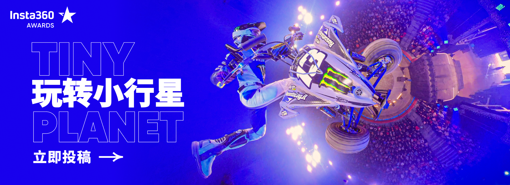 将你的作品,点击上方图片⬆️马上投稿至影石Insta360 Awards 挑战 - 玩转小行星,即有机会赢得现金大奖!